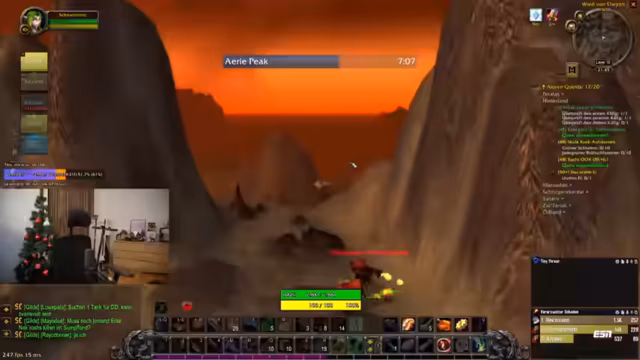 05:45:24Die Gruppe entscheidet sich für eine Reise nach Desolace, um dort Quests anzunehmen und zu erledigen. Es wird die Möglichkeit erwogen, in der Sengenden Schlucht weiterzuleveln, während sie über die Herausforderungen höherer Quest-Gebiete wie den Pestländern sprechen. Dabei tauschen sie sich über Loot aus, darunter ein Schwarzsteinring für den Tank, der die Trefferchance um 1% verbessert. Planungen für die Dungeon-Instanz Marodon werden angesprochen, wobei Unklarheiten über den Zeitpunkt und die Relevanz bestehen.