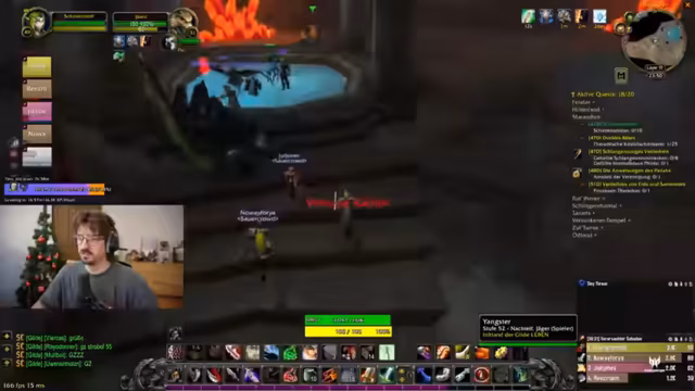 15:06:53Der Stream wird abgeschlossen, wobei die Stimmung als extrem positiv beschrieben wird, mit Erwähnung des erreichten Level 50 und der erfolgreichen Gruppenkooperation. Es folgt eine kurze Planung für den nächsten Tag, insbesondere für Quests in der Sengenden Schlucht und mögliche weitere Dungeon-Runs. Die Gruppe betont die Wichtigkeit des gemeinsamen Levelns und der Unterstützung untereinander, bis alle Level 60 erreicht haben. Abschließend gibt es eine Verabschiedung von den Zuschauern und ein Dank für den Support.