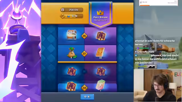 06:44:11Aufgrund der Frustration mit den Level-Unterschieden und der Meta beginnt der Streamer ernsthaft darüber nachzudenken, in seinen Account zu investieren, um Karten aufzustufen. Er erkundigt sich nach den Kosten für bestimmte Decks wie Goblin Giant mit Evo-Karten und überlegt, ob ein Kauf über den Supercell Store sinnvoller ist.