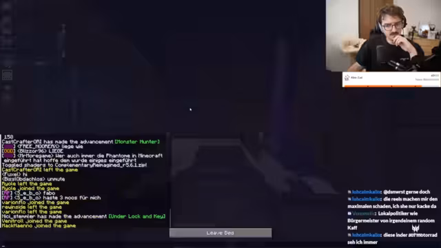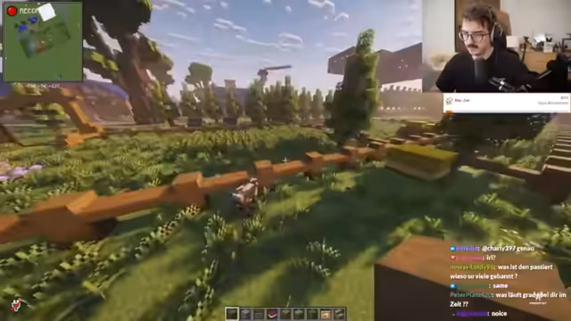 00:06:47Der Streamer begrüßt die „Frühschicht“ und scherzt über deren angeblichen Arbeitswillen, indem er behauptet, alle im Chat hätten mehr gearbeitet als eine bestimmte Person. Er erwähnt, dass seine erste Aufgabe des Tages, ein Brötchen zu bestellen, scheiterte, da der Bäcker noch keine Brötchen hatte. Im Chat wird über vermeintliche Bans von Spielern wie Spark, Basti und Hugo diskutiert, wobei der Streamer die Möglichkeit eines zweiten Minecraft-Accounts in Betracht zieht, falls er selbst gebannt werden sollte. Er freut sich auf ein bevorstehendes WoW-Event und überlegt, welche Farm ihn auf dem Server „geisteskrank OP“ machen könnte, da der Dowsinghof fast fertig ist und eine neue Aufgabe benötigt wird. Eine Goldfarm oder eine Monumentfarm werden als Optionen genannt, wobei er vermutet, dass Letzteres noch niemand gebaut hat.