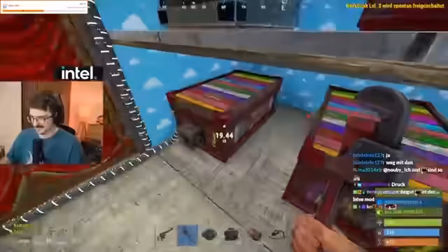 02:53:38Der Streamer interagiert stark mit dem Chat und nimmt Spenden und Danksagungen an. Er erwähnt, dass sein eigener Song im Radio läuft, was er als geil empfindet. Der Chat wird zu Diskussionen über das Gameplay, wie z.B. das Farmen von Green Key Cuts, genutzt. Der Bau der Basis schreitet voran, und der Streamer zeigt begeistert die neuen Strukturen. Es wird eine Frage aufgeworfen, wie man aus einem vollen Rucksack direkt craften kann, was eine Einschränkung im Gameplay zeigt. Der Fokus bleibt auf dem finalen Ausbau der Basis und der Vorbereitung auf zukünftige PvP-Aktionen.