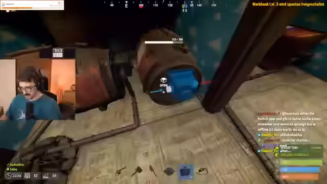 13:23:35Ein Tugboat wird gestohlen, um zur Anlage zurückzukehren und die verlorene Beute zurückzuholen. Dort wird festgestellt, dass die gesamte Basis des Streamers Chef Strobel zerstört wurde. Nach einem Kampf wird Chef Strobel selbst getötet. Sein gesamter Inventar, einschließlich eines Bootes, wird geplündert. Die Moral der Spieler ist hoch, da sie einen schweren Gegner ausgeschaltet haben, obwohl es auch zu persönlichen Beleidigungen im Chat kommt.
