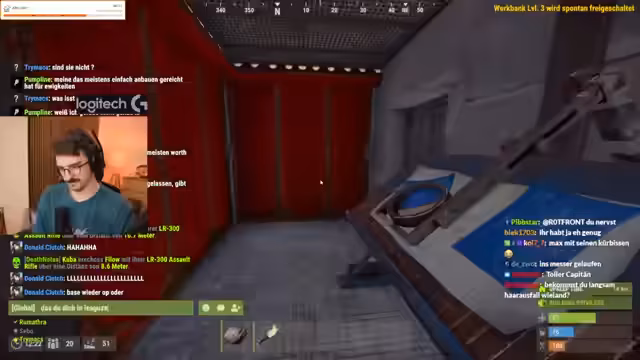 00:04:13Ein zentrales Thema im Stream ist der Teamkonflikt, der sich zuspitzt. Ein Teammitglied, genannt Chef, hat sich ohne Absprache aus den gemeinsamen Vorräten der Base eine eigene Chest gebaut und diese überall mit Codesperren versehen. Dies führt zu erheblichem Frust, da eine klare Kommunikation fehlt. Der Streamer erklärt, dass in den vergangenen 48 Stunden vergeblich versucht wurde, das Problem anzusprechen und Chef stattdessen 450 Munition verbrannt und sich abgesetzt hat, um ein Event zu besuchen.