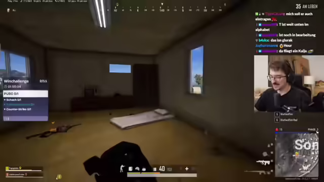 08:40:15Es beginnt eine Phase intensiver Feuergefechte, in der die Gruppe von einem Movie-ähnlichen Szenario überrascht wird, bei dem Schüsse aus allen Richtungen kommen, ohne dass sie Schaden nehmen. Die Suche nach 9mm Munition wird zum zentralen Anliegen, während gleichzeitig versucht wird, den Überblick über die Gegner zu behalten. Ein Teammitglied wird niedergestreckt, was zu einer hektischen Loot-Phase führt, um sich neu auszurüsten. Die Situation eskaliert, als ein Gegner pusht und ein Teammitglied tötet. Die Streamsniper werden verdächtigt, die Lobby zu dominieren, und es wird gehofft, dass diese fair spielen und das Team nicht weiter ins Visier nehmen. Die Gruppe plant, zu ihrem vorherigen Loot zurückzukehren, wobei der Fokus darauf liegt, gemeinsam vorzugehen, um nicht in Hinterhalte zu geraten. Die MP5 wird als Waffe in Betracht gezogen, obwohl ihre Effektivität diskutiert wird. Die Streamsniper könnten die Stimmung kippen und aggressiver werden, was die Situation zusätzlich erschwert. Es wird die Möglichkeit eines League Back-to-Back-Spiels mit Kroko in Erwägung gezogen, um eine Pause von PUBG zu machen.
