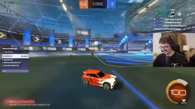 04:04:31Die Gegner werden als "Dogshit" bezeichnet und die eigene Leistung hervorgehoben. Es wird ein Fehler des Teammates kommentiert und die eigene Leistung gelobt. Es wird ein Trick der Gegner kopiert und die eigene Leistung gelobt. Es wird über die Farben der Autos im Spiel diskutiert und die eigene Leistung gelobt. Nach einem weiteren Tor wird die Leistung der Gegner als schlecht und die eigene Leistung als dominant dargestellt. Es wird ein AFK-Gegner festgestellt und die eigene Leistung gelobt. Es wird ein Tor des Gegners kommentiert und die eigene Leistung in der nächsten Runde hervorgehoben. Es wird über die Chat-Nachrichten der Gegner gelästert und die eigene Leistung gelobt. Es wird die Elo der Gegner als niedrig eingeschätzt und die eigene Leistung gelobt. Es wird überlegt, ob man die Gegner zum Aufgeben auffordern soll. Nach dem Aufgeben der Gegner wird die eigene Leistung gefeiert und die nächste Runde angekündigt. Es wird überlegt, ob man dieselben Gegner nochmal bekommt. Es wird ein Tor erzielt und die eigene Leistung gelobt. Es wird ein Fehler des Teammates kommentiert und die eigene Leistung gelobt. Es wird die eigene Elo als hoch eingeschätzt und die Leistung der Gegner als schlecht dargestellt.