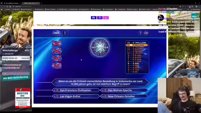 05:32:26Die Gruppe gewinnt und steht vor der finalen Frage für 500.000 Euro. Es geht um die Frühzeit menschlicher Besiedlung in Südamerika vor rund 10.000 Jahren und um welchen Begriff zu lesen ist: San Francisco Zivilisation, Las Vegas Kultur, Des Moines Epoche oder New Orleans Zeitalter. Es wird diskutiert, welche Antwort am ehesten nach Besiedlung und Stadt klingt, wobei Las Vegas aufgrund der speziellen Stadtstruktur mit Slums am Stadtrand in Betracht gezogen wird. Die Gruppe überlegt, ob sie der Intuition folgen oder auf das Wissen des anderen vertrauen soll. Es wird argumentiert, dass die Lebensbedingungen vor 10.000 Jahren keine Slums zugelassen hätten, was gegen Las Vegas spricht. Die Gruppe wägt zwischen Des Moines und Las Vegas ab und entscheidet sich schließlich für Las Vegas, basierend auf der Erklärung zur Stadtstruktur und der Verbindung zu Slums. Nach der Antwort stellt sich heraus, dass sie die 500.000 Euro gewonnen haben, was zu großer Freude führt.