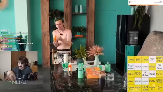 00:19:00Nach der Vorstellung des musikalischen Geschenks wechselt der Streamer das Thema und bereitet ein 'Beauty and the Nerd' Bingo vor. Er schaut die Show selbst noch nie gesehen hat und beginnt, die Bingo-Felder basierend auf den Vorabinformationen und den ersten Minuten der Folge zu füllen. Mit Hilfe des Chats werden Themen wie 'Weinen', 'Dumm', 'Cringe', 'Nervt', 'Beef', 'Anime/Cosplay', 'Alkohol' und 'Rauchen' festgelegt. Er erwähnt Auflagen vom Management, die das Hochladen auf YouTube ermöglichen, aber bestimmte Themen wie zu viel Alkohol oder Nacktheit verbieten.