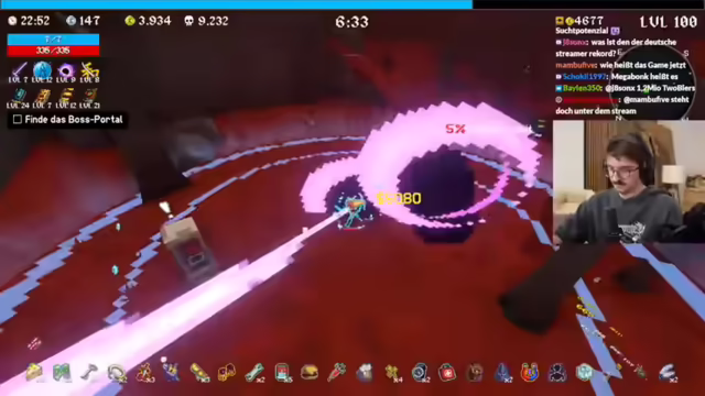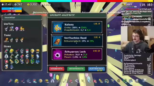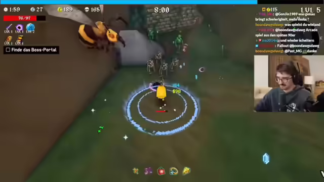 05:28:30Es wird überlegt, wie man sich am besten positioniert und welche Items man leveln sollte, um im Spiel voranzukommen. Das schwarze Loch soll dabei helfen, Gegner fernzuhalten, während der Executioner verbessert werden muss. Es wird die Frage aufgeworfen, wie oft Kisten droppen und wie man sich am besten bewegt, um Elite-Gegner zu besiegen. Geldmangel für Thronen wird beklagt und überlegt, ob man etwas überspringen sollte. Eine valide Taktik wird diskutiert, bei der man eine Kiste hinter sich holen muss, was jedoch riskant ist. Es wird betont, wie wichtig es ist, nicht von Gegnern berührt zu werden, da dies oft den sofortigen Tod bedeutet. Der Chat wird um Hilfe gebeten, Kisten zu finden und es wird überlegt, ob man für Subgifts ein Risiko eingehen soll, um eine Kiste zu holen. Ein rutschiger Ring wird als wertvoller Fund hervorgehoben. Die maximale XP-Anzahl wird erreicht und die Funktionsweise des Spiels wird diskutiert. Es wird überlegt, ob man verfluchtes Band noch benötigt und wie man Glück am besten einsetzen kann.