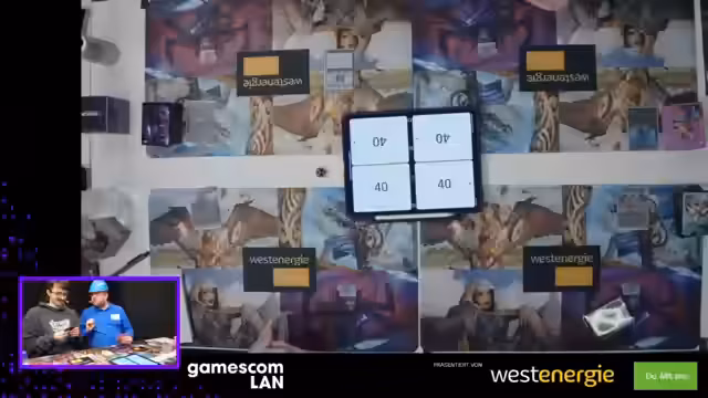 00:00:41Der Stream startet mit der Ankündigung, dass zum ersten Mal Magic gespielt wird, genauer gesagt Commander Deck, und das auf der Gamescom LAN. Es wird betont, dass es sich um eine 'geile Runde' handeln soll, obwohl es anfängliche Schwierigkeiten mit dem Live-Gang gab. Die Vorfreude auf das Magic-Spiel ist groß. Später wird die Gamescom-Lahn aus Köln mit Ariel Adams als Moderatorin offiziell begrüßt. Westenergie präsentiert sich als Energielastungsträger und Arbeitgeber, der Magic unterstützt. Es wird hervorgehoben, dass Westenergie sich um das Unter der Erde kümmert und die Basis für die Stromversorgung bildet, während Westnetz an die Endkunden herantritt. Die Commander-Karten wurden speziell mit den Gesichtern der Spieler versehen, wobei Romatra für den erkrankten Maxim Markov eingesprungen ist. Es wird ein Gewinnspiel angekündigt, bei dem die Decks verlost werden sollen. Jen, Kevin und Romatra werden kurz vorgestellt, wobei Jens Magic-Erfahrung und Kevins lange Magic-Karriere betont werden. Romatra wird als Raketenwissenschaftler und Bartimaeus-Fan vorgestellt.