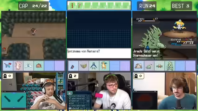 05:10:19Der Streamer wechselt das Thema und Spiel vollständig zu Pokémon Schwarz-Weiß. Er startet einen sogenannten Soul Link Nuzlocke, ein komplexes Regelwerk, bei dem er mit zwei anderen Spielern, Romatra und Trimax, verbunden ist. Die gefangenen Pokémon sind seelenverknüpft, sodass der Tod eines Pokémon auch bei den Mitspielern zum Tod des entsprechenden Pokémon führt. Er wählt seinen Starter, Travigato, und beginnt seine Reise, wobei er die Schwierigkeiten des neuen Gameplays und der verknüpften Schicksale erfährt.
