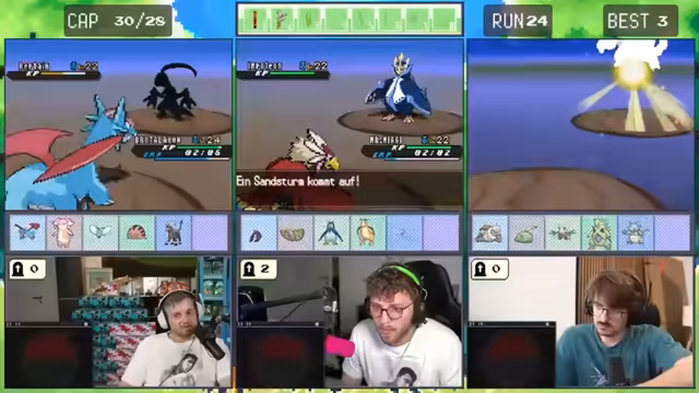 09:00:48Zu Beginn des Zeitraums wird die Erfolglosigkeit eines Pokémon-Fangversuchs thematisiert. Der Streamer beschäftigt sich intensiv mit der Kampfstrategie gegen ein starkes Pokémon. Er erkennt Schwächen bei den eigenen Attacken, insbesondere dass Despotar keinen Schaden durch Sandsturm erleidet. Die Diskussion konzentriert sich darauf, wie das gegnerische Pokémon geschwächt werden kann, wobei Optionen wie Einschlafen mit Schlaf und der Einsatz von Bären zur Schadensreduktion über Zeit diskutiert werden.