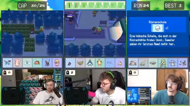 09:56:34Auf dem Weg zum Zielort trifft der Streamer auf mehrere zufällige Kämpfe und entdeckt seltene Pokémon wie Evolith. Die Beute dieser Kämpfe, darunter das Item Protein, wird zur Verbesserung des Teams genutzt. Gleichzeitig werden zufällige Events genutzt, um wichtige Items zu farmen und das Team weiter auszubauen.