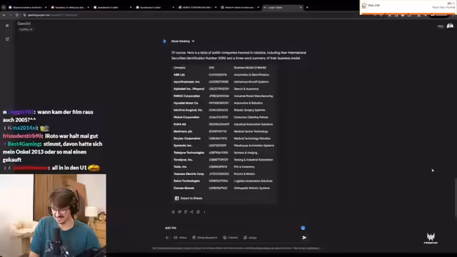 02:25:18Die Analyse von Robotik-Unternehmen erfolgt anhand fundamentaler Kennzahlen, insbesondere des Kurs-Gewinn-Verhältnisses (KGV) und der Umsatzzahlen. Ein hohes KGV deutet auf eine Wachstumsaktie hin, bei der der Markt hohe Zukunftserwartungen hat, während ein niedrigeres KGV auf eine etablierte Firma mit geringerer Wachstumsdynamik hindeutet. Der Streamer betont, dass solche Listen ein guter Ausgangspunkt sind, aber stets durch eigene Nachforschungen verifiziert werden müssen, um die Genauigkeit der Daten sicherzustellen.