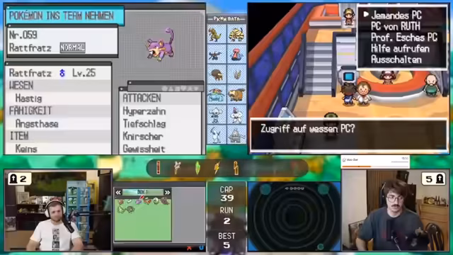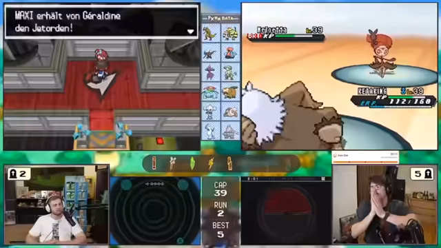 01:39:47Der Höhepunkt ist der Fund eines Darkrais, das eine phänomenale Attacke, Raumfresser, erlernt und mit Hypnose, Traumfresser und Passiven extrem stark wird. Gleichzeitig erhält der Spieler zufällig den Meisterball, was jeden zukünftigen Fang, selbst von legendären Pokémon, zur Sicherheit macht und den Stream mit Spannung und Freude erfüllt.