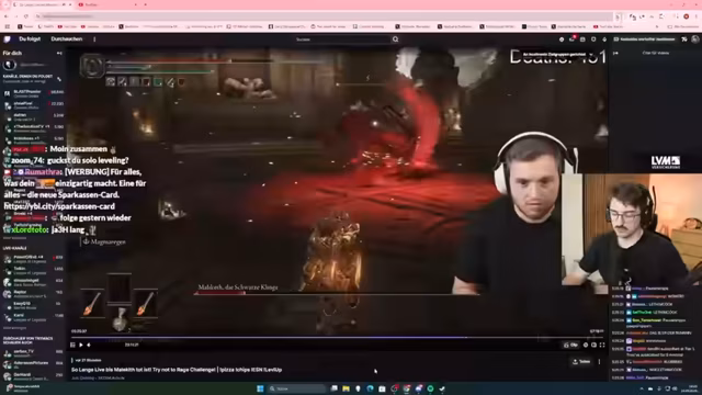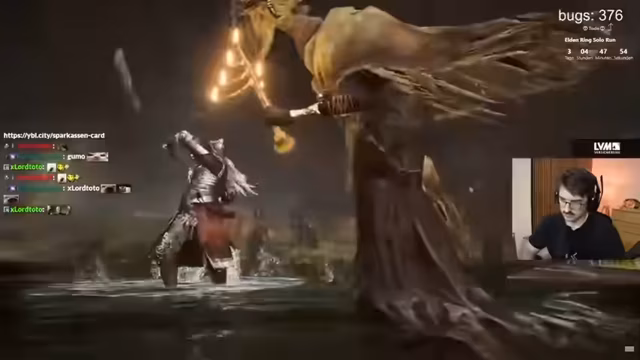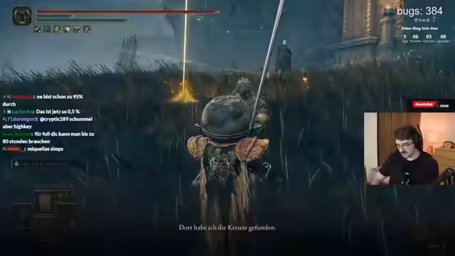 02:07:40Der Streamer stellt erneut fest, dass er nach sehr seltenen Waffen sucht, die sowohl optisch ansprechend als auch gut spielbar sind. Nachdem er eine größere Ansammlung von Gegnern, sogenannte 'Opfer', besiegt hat, kämpft er gegen einen neuen Boss, den 'Eidsucher'. Obwohl er im DLC bisher nur wenige Bosse getroffen hat, fühlt er sich von den Kämpfen nicht herausgefordert und stellt fest, dass bisher kein Gegner den Eldenlord wirklich aufhalten konnte.