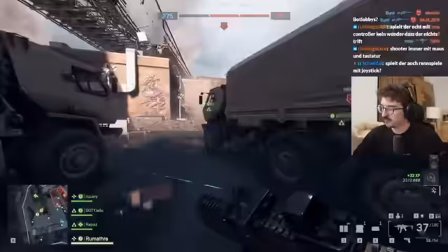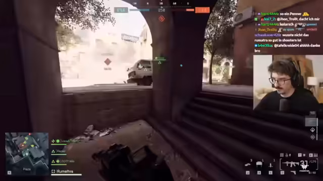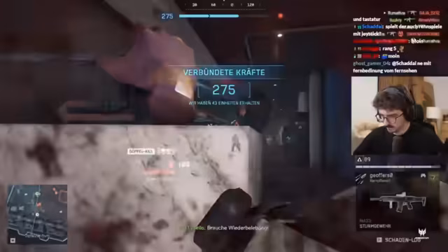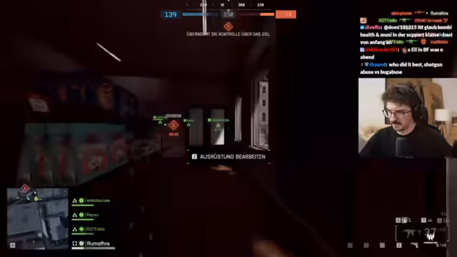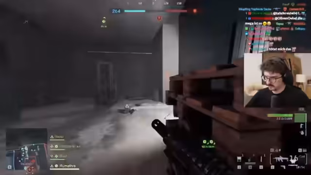 02:46:37Der Streamer beklagt sich über seine aktuelle Waffenwahl, insbesondere die Smoke-Granate, die er unabsichtlich die ganze Zeit mit sich herumträgt. Er hinterfragt den Nutzen der Medic-Klasse in diesem Modus, da Wiederbelebungen nicht möglich sind und der Stim-Effekt als nutzlos empfunden wird. Es wird ein hohes Spieltempo und die Schwierigkeit, Gegner zu lokalisieren, beschrieben. Ein Mitspieler, Reapers, zeigt eine beeindruckende Leistung mit 17 zu 4 Kills. Es wird die Shotgun als die 'most broken Waffe im Spiel' bezeichnet, die 10 Stunden am Tag genutzt wird. Die Spieler loben die gute Hörbarkeit von Schritten im Spiel, auch wenn es manchmal zu Störungen kommt. Es wird die Schwierigkeit betont, die Herkunft der Gegner zu identifizieren, und ein Mitspieler erinnert sich an frühere Battlefield-Erfahrungen, wobei das Alter die Erinnerung trübt. Der Streamer beklagt sich über Seitenstechen und seine schlechte Leistung mit der Shotgun, während er die Effektivität von MPs und die erste MP im Spiel als 'beste Waffe im Game' hervorhebt.