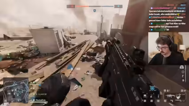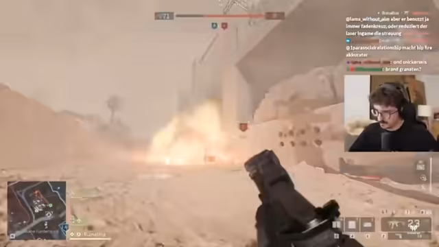 03:53:21Ein Giveaway wird angekündigt, bei dem die Teilnehmer „Hashtag Schande“ in den Chat schreiben sollen, was zu einer humorvollen Diskussion über die Ironie des Keywords führt. Die Spieler äußern den Wunsch nach Abwechslung bei den Maps, da sie immer wieder dieselben zwei Karten spielen müssen. Es wird die Map „Kairo“ gewünscht. Ein Spieler bemerkt, dass die SGX-Waffe im Vergleich zu anderen Waffen „insane viel besser“ ist. Die Diskussion wechselt zu den Sturmgewehren, die als ineffektiv auf größeren Maps beschrieben werden, da die Kugeln oft ihr Ziel verfehlen. Ein Spieler äußert seinen Hunger und macht seinen Mitspieler dafür verantwortlich, dass er von einem leckeren Wrap erzählt hat.