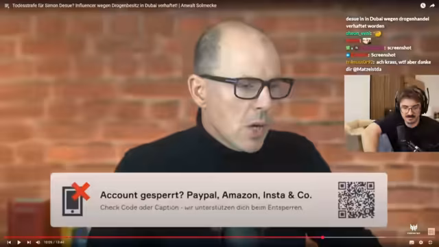 00:30:20Ein weiterer wichtiger Punkt des Streams ist die Verhaftung des deutschen Influencers Simon Desue in Dubai wegen angeblichen Drogenhandels. Der Streamer und die Zuschauer zeigen sich überrascht und amüsiert über die Nachricht, da Desue seit langem nicht mehr in den Medien präsent war. Es wird über die strengen Drogengesetze in den Vereinigten Arabischen Emiraten diskutiert, die von hohen Geldstrafen über lange Haftstrafen (bis zu 25 Jahre für Ausländer) bis zur Todesstrafe reichen können. Es werden frühere Kontroversen von Simon Desue, wie seine Instagram-University und Betrugsvorwürfe, angesprochen. Der Streamer spekuliert über das mögliche Strafmaß und die Konsequenzen, wie Abschiebung und lebenslanges Einreiseverbot. Es wird auch ein Video der Dubai Police gezeigt, das die Festnahme eines anderen Influencers, Hashi Papi, in spielfilmähnlicher Manier darstellt, was die Härte des Systems verdeutlicht.