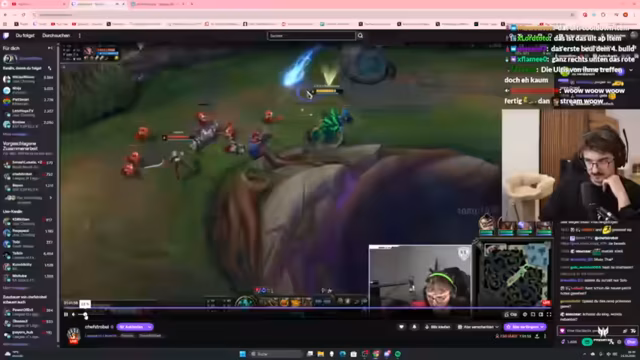 00:06:47Der Stream beginnt mit einer Diskussion über 'Chef Strobel's' League of Legends Gameplay-Clips. Es wird kritisiert, dass 'Chef Strobel' trotz eines Double Buffs und fast fertiger Items in ungünstige Kämpfe geht und dabei stirbt. Die Zuschauer und der Streamer zeigen sich fassungslos über seine Entscheidungen, insbesondere seine Resistenz gegenüber Lernkurven und sein Verlangen, AP (Ability Power) zu bauen, obwohl das Gegnerteam hauptsächlich aus AD (Attack Damage) Champions besteht. Es wird angemerkt, dass er auf Gold 3 spielt, aber dennoch grundlegende Fehler macht. Die Diskussion über 'Chef Strobel's' Spielweise, die als 'lernresistent' und 'wahnsinnig' bezeichnet wird, zieht sich durch einen Großteil des ersten Segments und sorgt für viel Unterhaltung und Kopfschütteln bei den Zuschauern.
