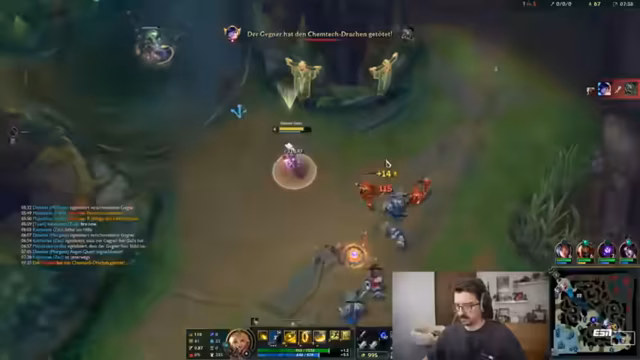 01:45:10Das Team versucht, einen Drachen zu sichern, doch die Koordination mündet in einem Chaos. Der Streamer beschreibt die widersprüchlichen Handlungen seiner Mitspieler, wie zum Beispiel den Alistar, der ihm in den Rücken fällt. Trotzdem kämpft er weiter und erkennt, dass er mehr konzentriert sein und seine Fähigkeiten besser einsetzen muss, um den Spielstand zu verbessern und den gegnerischen Carry zu eliminieren.