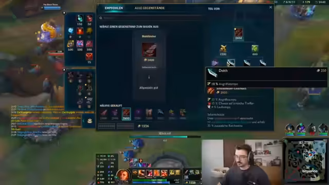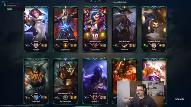 00:06:42Der Streamer wählt Miss Fortune als Ad-Carry und stellt fest, dass sein Team einen 'Smurf' in der Top-Lane hat. Er kritisiert die aktuelle Meta und die hohe Elo, gegen die er spielt, und stellt fest, dass er gegen Emerald-Spieler antritt, was ihm als 'erfrischend' erscheint. Er äußert Frustration über die Spielleistung und beschreibt die Partien als 'schlimm', während er versucht, mit seinem Champion Miss Fortune durchzudrücken.