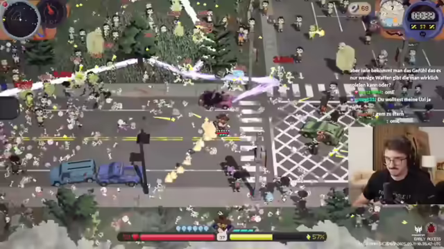 02:09:01Der Streamer erklärt, dass er gestorben ist, weil er hängen geblieben ist und das Auto nicht gesehen hat. Er entscheidet sich, sich umbringen zu lassen, um den Sheriff-Build auszuprobieren, und kündigt an, den Sheriff und die Railgun spielen zu wollen. Es wird überlegt, welche Waffen im Late-Game nicht laggen, wobei Waffen mit wenig Schüssen, die viel Schaden verursachen, bevorzugt werden. Die Sense wird als besonders effektiv hervorgehoben. Es wird erwähnt, dass es aktuell fünf Charaktere gibt. Der Streamer nimmt Items für die Railgun mit und stellt fest, dass ihm Crit-Damage fehlt. Er bittet den Chat, für die Raygun zu voten und betont die Wichtigkeit von mehr Platz. Das Hängenbleiben in Ecken wird als sehr frustrierend beschrieben und als Grund für den Tod gegen den Tod genannt.
