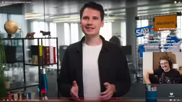 00:08:50Der Streamer reagiert auf eine Dokumentation über SAP, dem wertvollsten europäischen Unternehmen. Die Doku beginnt im Jahr 1972, als Computer noch riesige Schränke mit Lochkarten waren. Die IBM-Mitarbeiter Dietmar Hopp und Hasso Plattner erkannten, dass Unternehmen ähnliche Aufgaben haben und entwickelten ein Standardprogramm. IBM hatte kein Interesse, also gründeten sie SAP. Im ersten Jahr erwirtschaftete SAP 600.000 DM Umsatz. Mitte der 70er entwickelte SAP das Softwarepaket R1, das Datenabteilungen vereinfachte. In den 90ern expandierte SAP nach Amerika und der Umsatz verzehnfachte sich. SAP stieg in den DAX auf und wurde weltweit führend für ERP-Software. Hopp und Plattner ergänzten sich gut, wobei Plattner der Visionär war und Hopp sich um die Finanzen kümmerte. SAP geriet jedoch in eine Krise, als das Internet aufkam und Konkurrenten wie Oracle entstanden. Oracle griff SAP direkt an, indem es eigene Unternehmenssoftware entwickelte. Der Streamer schaut sich die Dokumentation über die Anfänge und den Aufstieg von SAP an und kommentiert die Entwicklung des Unternehmens und seiner Gründer.