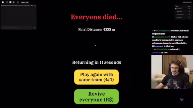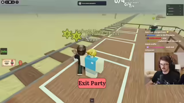 04:38:09Es herrscht Verwirrung darüber, wer am Stream teilnehmen sollte, wobei Namen wie Nick, Romatra und Kroko fallen. Es wird diskutiert, welches Roblox-Spiel gespielt werden soll, wobei 'Deadrace' im Raum steht, aber dessen Bedeutung unklar ist. Es wird gescherzt, dass es sich um ein 'Vaterrennen' oder ein 'Todesrennen' handeln könnte. Rewi wird für seine ungefilterte Art gelobt, während er selbst zugibt, die Kontrolle verloren zu haben. Er äußert provokante Gedanken über Kevin Teller, was zu einer Diskussion über dessen angebliche Ablehnung führt. Ein Chat-Kommentar über das Fehlen von Beinen bei einer Figur von PeteSweet wird aufgegriffen und mit einer humorvollen Erklärung über die Firmenversicherung der Beine beantwortet. Die Gruppe einigt sich schließlich darauf, 'Tote Schiene' zu spielen, ein Spiel, das mit 'Wrath' verglichen wird, bei dem es darum geht, einen Zug zu fahren, Gegner abzuwehren und zu looten. Coco benötigt noch etwas Zeit, um spielbereit zu sein, da er noch mit seinem Rucksack beschäftigt ist.