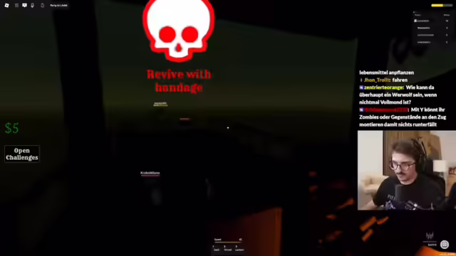 05:34:03Die Gruppe startet ihre Erkundungstour, wobei ein Spieler unter dem Zug entdeckt wird, was zu allgemeiner Verwirrung führt. Es wird ein Haus in der Nähe erwähnt, aber die einsetzende Nacht zwingt die Gruppe zur Eile. Nach kurzer Zeit wird klar, dass die Waffen aufgeladen werden müssen, und es wird diskutiert, wie man am besten mit dem Geld umgeht. Ein Spieler entdeckt einen Jutesack und versucht, Gegenstände darin zu verstauen. Plötzlich taucht ein ungebetener Gast auf, der ins Spiel gejoint ist, und die Gruppe beschließt, Pferde zu jagen, um Ressourcen zu sammeln. Es stellt sich jedoch heraus, dass dies schwieriger ist als erwartet. Währenddessen wird bemerkt, dass die Lobby nicht auf privat gestellt ist, was zu Besorgnis führt, dass weitere Spieler dem Spiel beitreten könnten. Die Gruppe beschließt, schnell loszufahren, bevor noch mehr Zombies ins Spiel kommen.