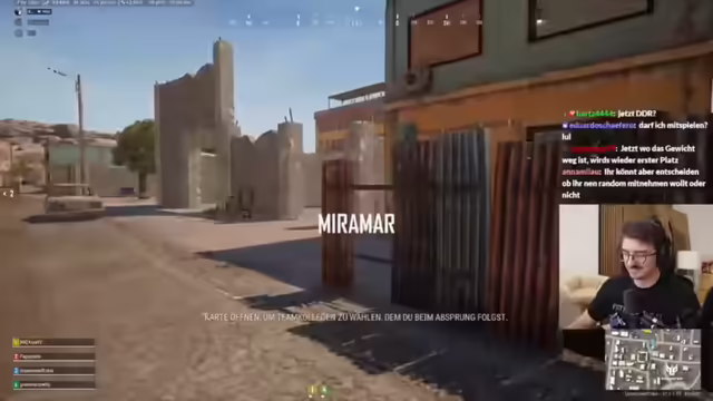 06:32:38Nach anfänglichen Schwierigkeiten startet das PUBG-Spiel. Es wird über das Aussehen des Charakters und den Verlust von Loot diskutiert. Es wird über frühere Formatideen gesprochen, wie z.B. eine Rust-Win-Challenge. Während des Spiels gibt es humorvolle Kommentare und Team-Diskussionen über Strategien und Spielweisen. Es wird über den Übermensch-Begriff im Spiel diskutiert und wo gedroppt werden soll. Die anfängliche Planung wird verworfen und Fishing Camp als Landeplatz gewählt. Nach der Landung wird Loot gesammelt und auf Streamsniper geachtet. Es gibt Team-Unterstützung und Warnungen vor Gegnern. Es wird über die Dragunov und andere Waffen diskutiert. Ein Teammitglied wird von Gegnern gepusht und es kommt zum Kampf. Es wird überlegt, ob das gefallene Teammitglied gerettet werden kann. Es wird über die Möglichkeit diskutiert, die Karte des gefallenen Spielers mitzunehmen. Das Team kämpft gegen mehrere Gegner-Teams und es kommt zu Verlusten. Trotzdem werden Kills erzielt und das Spiel wird als unterhaltsam empfunden.
