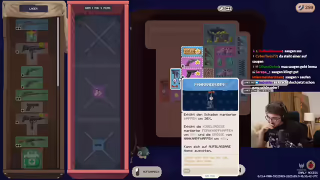 01:18:31Es wird über die Seltenheit von Apfeltaschen im Spiel diskutiert, wobei ein vergangener Run mit vielen Apfeltaschen als legendär bezeichnet wird. Der Fokus liegt auf dem Verbessern des Fernkampfschadens und der Saug-Reichweite für den Endless Run. Das Ziel ist es, alles zu maximieren, was als befriedigend empfunden wird. Es wird festgestellt, dass man am Anfang viel Platz für Items wie Schuhe und Pizza benötigt. Pistolen können verbessert werden, aber das bringt momentan nichts. Der Streamer zieht es vor, Items neu zu würfeln, anstatt sie zu nehmen, und sortiert sein Inventar neu, wobei er feststellt, dass er inzwischen zwei Laser-Pointer hat. Das Spiel wird als eine Mischung aus Backpack Battles und Web Battles beschrieben, jedoch gegen sich selbst.