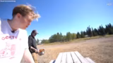 01:55:41Bevor es weitergeht, wird die erhaltene Überlebensausrüstung getestet. Das Bärenspray wird vorgeführt, wobei der Streamer vor unabsichtlichem Auslösen warnt. Die verliehene Axt weckt den Wunsch, einen Baum zu fällen. Eine humoristische Einlage bildet das Betrachten eines Films (Brokeback Mountain) und das Tragen von Caps. Der Streamer zeigt sich begeistert von der Atmosphäre und plant, die Zeit zu nutzen, um zukünftige Inhalte für die Plattform zu erstellen.