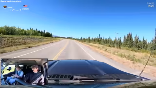 01:59:18Am Anfang des Streamsabschnitts stehen humorvolle Bemerkungen über einen vermeintlichen Geruch im Auto und Absurditäten wie verstecktes Gras in der Lüftung. Es folgt eine unkoordinierte Suche nach dem Autoschlüssel, gefolgt von technischen Ratschlägen zur Befestigung von Kabeln mit Gaffer-Tape. Die Diskussionen unterbrechen die Reiseplanung für die Fahrt nach Alaska, wobei der Streamer technische Geräte wie ein AirTag zur Ortung erwähnt, seine Zuversicht für das GPS in der Wildnis äußert, aber auch die Bedenken teilt, in abgelegenen Gebieten ohne Netzempfang zu stranden.