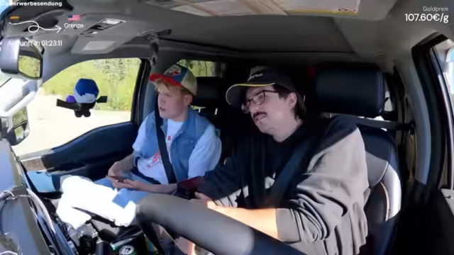 13:00:21Nach einigen anfänglichen Schwierigkeiten beim Tanken gelingt es einem der Streamer, den Vorgang zu meistern. Die Situation wird als großer persönlicher Erfolg für ihn gewertet, der seine Fähigkeiten unter Beweis stellt. Die Streamer wechseln sich bei den Fahrten ab und bereiten sich auf die letzten Kilometer zur Grenze vor, wobei das Ziel ist, einen Campingplatz zu erreichen und zu schlafen.