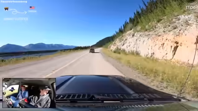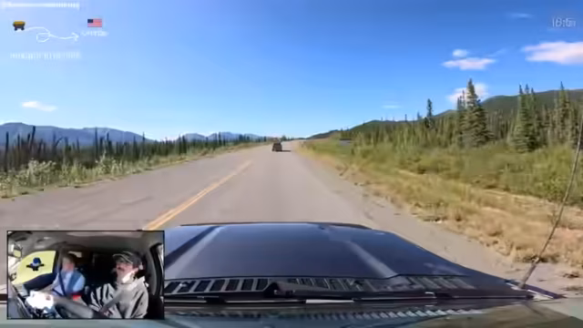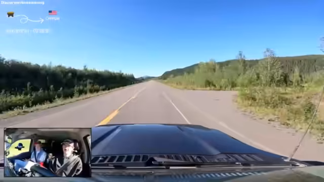 03:29:17Ein Hauptthema ist das Fahren auf dem Alaska Highway. Der Streamer, der einzige mit Führerschein im Team, beschreibt die langen, geraden Straßen und die einfache Fahrbarkeit. Trotzdem ist die Konzentration gefordert, da das Fahrzeug einen riesigen Camper-Aufbau trägt, der die Sicht nach hinten komplett blockiert. Während der Fahrt gibt es Diskussionen über Musik, Bärensichtungen und die allgemeine Stimmung der Reise, die als extrem chillig und gelassen beschrieben wird.