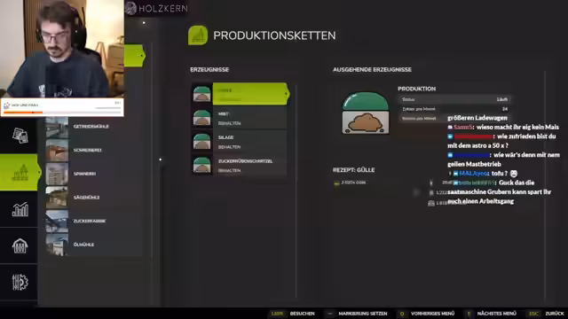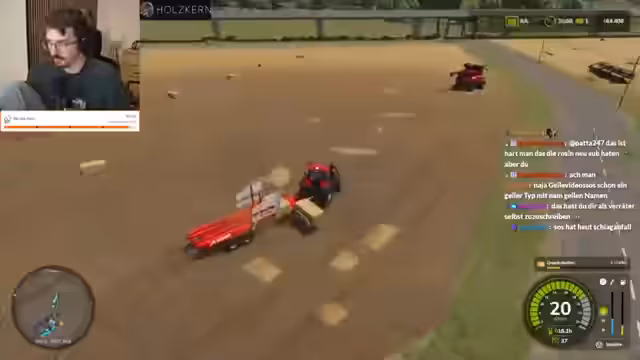 12:20:45Es wird über den Zustand von Geräten im Spiel gesprochen, die schnell kaputtgehen. Eine Sojaproduktionskette wurde aufgebaut, mit der Möglichkeit, die Produktion noch zu erweitern. Es wird über die Notwendigkeit gesprochen, bald wieder Weizen anzubauen, da die Weizenreserven zur Neige gehen. Die Größe der Felder wird mit vier Feldern als gewaltig empfunden. Es wird festgestellt, dass es nicht schlimm ist, wenn kleine Ecken auf den Feldern ungedüngt bleiben oder Unkraut vorhanden ist. Parallel dazu erzählt er von einem Sieg in einem anderen Spiel, League of Legends, gegen eine vermeintliche Master Toplanerin mit Vayne, was im Chat angezweifelt wird. Er verteidigt seine Leistung und erklärt, dass er sogar mit Laneswap gespielt habe. Es wird über die Reaktion des Chats auf seine Erzählungen diskutiert, wobei ihm vorgeworfen wird, ich-bezogen zu sein und kein Interesse an den Spielen der anderen zu zeigen. Er rechtfertigt sich, indem er sagt, er habe mehrmals nach dem Fortschritt der anderen gefragt. Es wird ein Gespräch über frühere Ereignisse geführt, bei denen er sich gefühlt habe, und die Erlaubnis zugesprochen, sich nach einem Erfolg auch mal freuen zu dürfen.