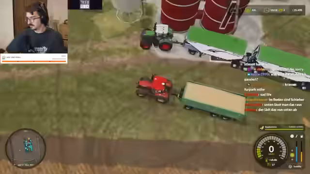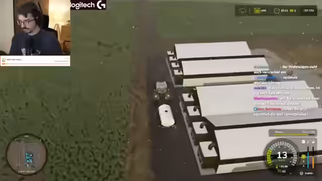 00:03:46Der Stream startet mit der Feststellung, dass das Team eine Million Schulden hat. Es ist Tag 3 des Bauen-Camps. Es wird ein Fendt 942 Vario erwähnt. Es wird kurz auf die bevorstehende Weizenernte eingegangen und festgestellt, dass Brot erst im Dezember verkauft werden kann. Es wird ein Überblick über die Produktionskette gegeben: Weizen wird angebaut, zur Mehlfabrik gebracht, dort zu Mehl verarbeitet, das Mehl wird zur Brotfabrik transportiert, und das fertige Brot wird verkauft. Zusätzlich werden Kühe gehalten, um Einnahmen zu generieren. Es wird kurz diskutiert, ob der neu gekaufte Traktor ein Großtraktor ist und wofür er eingesetzt werden kann. Der Streamer macht sich an die Arbeit und es wird die Frage aufgeworfen, wie der Mitspieler Sebo so viel Geld gemacht hat. Die Antwort ist, dass er alles neu angepflanzt und zu Weizen und Brot verarbeitet hat, um es zu verkaufen. Erwirtschaftung von 200.000 nur durch Brotverkauf. Es wird festgestellt, dass keine Ballenpresse vorhanden ist, obwohl das Team gut gewirtschaftet und ein neues Feld erworben hat.