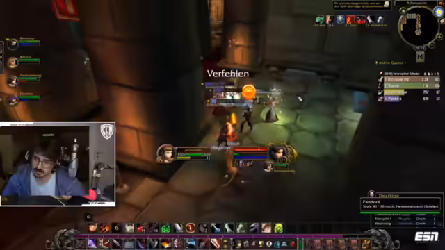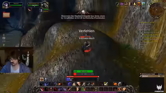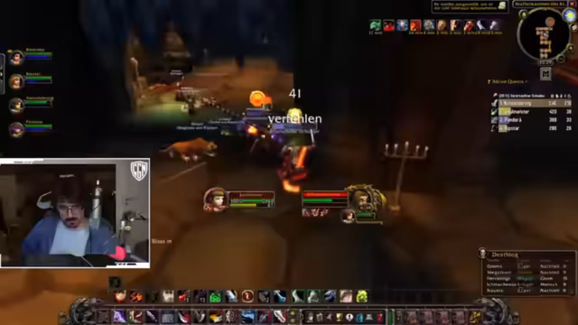 00:10:01Der Streamer plant Dungeon-Läufe (Verlies/Deadmines) und sucht nach Mitspielern. Rotkamm wird als Quest-Gebiet favorisiert, während Ashton-Teil/Darkshore als unattraktiv eingestuft wird. Es folgen Diskussionen über Level-Anforderungen für Dungeons (28+ für Verlies) und Quest-Herausforderungen wie Rattenfell-Anhänger in Elite-Gebieten. Der Streamer erkundet Elite-Mobs und deren Respawn-Zeit, wird jedoch überfallen und überlebt knapp. Ein Clip wird erwähnt, und ein Gegenschlag-Spell wird als mächtig identifiziert, was zu Verwunderung führt.