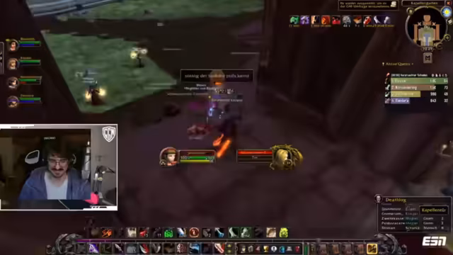02:19:05Gruppe bekämpft Bosse wie 'Lady Saravis'. Verhandlungen über Item-Verteilung (Schwerter, Rüstungen). Quest-Abgabe wird koordiniert – Spieler sammeln Quest-Items ein und lösen Belohnungen aus (z.B. Manuskripte). Debatten über Schadensprioritäten und Markierungsstrategien für Ziele. Diskussion über Klassen-Spezialisierungen (Rogue vs. Warrior) für bessere Effizienz.