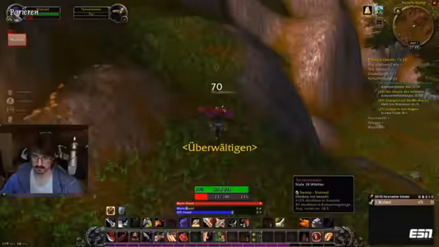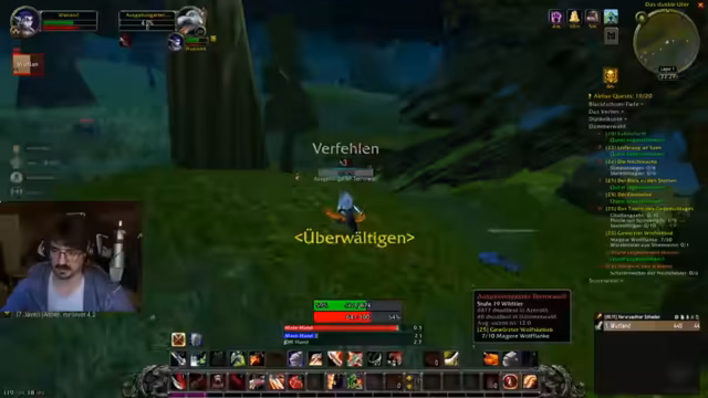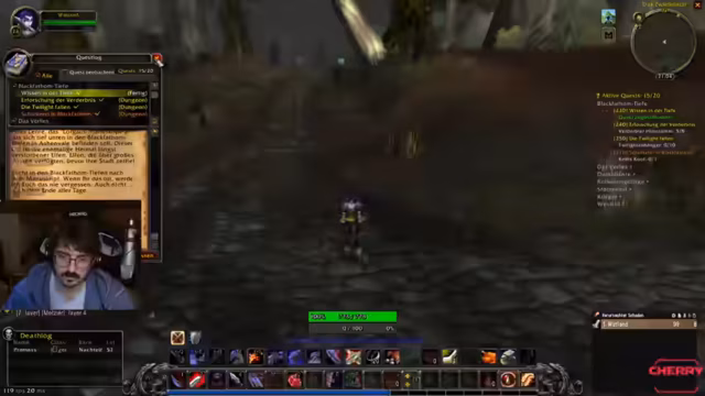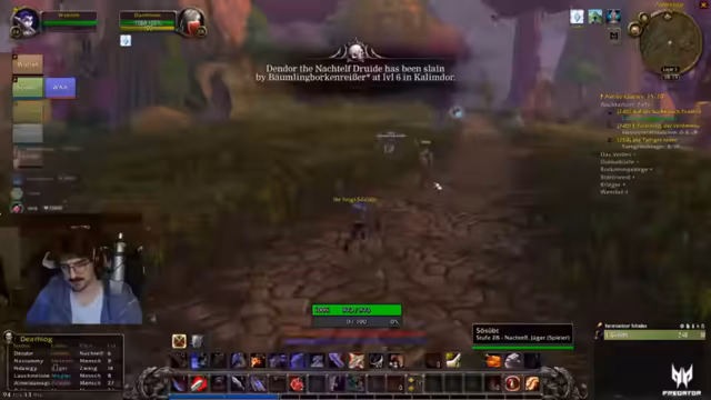 05:34:56Der Spieler kämpft gegen Gegner, bemerkt Probleme mit Zusatzschaden und Feueratze-Schaden. Er diskutiert Gruppenprobleme, als er zwei Gegner nicht besiegen kann. Später plant er mit anderen Spielern den Levelaufstieg im Dämmerwald auf Level 24, diskutiert Flugpunkte und hat Schwierigkeiten, Questtexte zu lesen.