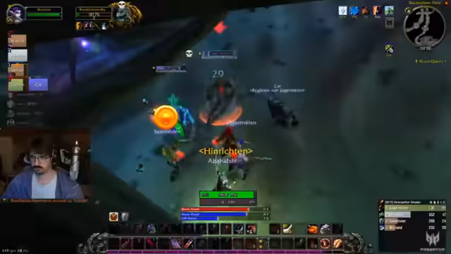 02:04:20Gruppe betritt BFD. Taktische Besprechung vor Boss-Kämpfen: Schwerpunkt auf Schadensverteilung und Heiler-Sicherung. Diskussion über Jäger-Fähigkeiten (Speed-Buffs, Gefahren durch Damage-Taking). Spieler erwähnen nützliche Items wie den 'Licht der Lunaren'-Quest-Belohnung (10 Sekunden Immuniteit). Humorvolle Interaktionen über Ernährung (Vegetarismus) während des Kämpfens.