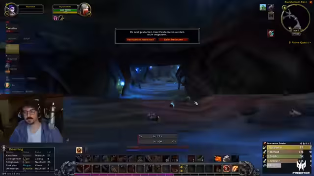 07:16:23Der Spieler sucht nach einer Gruppe für Blackfathom Deep (BFD) und erlebt einen Kampf gegen Stitches, den er knapp überlebt. Es gibt Layer-Probleme, Quest-Herausforderungen und Schwierigkeiten, eine Gruppe zu finden. Nach einem Wipe setzen sie fort und diskutieren die Mechaniken.