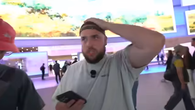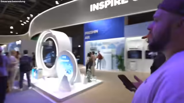 00:06:56Beim Samsung-Stand geht es um Smart Home-Geräte und künstliche Intelligenz. Sie probieren den Lautsprecher 'Eufy AI Core' aus, dessen Lüfter der Streamer anfasst. Ein wichtiges Augenmerk liegt auf der Technologie 'Gemini Live', einer KI-Assistentin, die in Echtzeit Fragen beantworten und Empfehlungen geben kann. Sie testen die Funktion, indem sie die KI fragen, welche Kleidung bei dem aktuellen Wetter besser geeignet wäre. Der Streamer äußert seine Skepsis gegenüber Funktionen, die es schon vor 20 Jahren gab, und stellt die Notwendigkeit einer ständigen App-Verbindung für Geräte wie Waschmaschinen infrage.