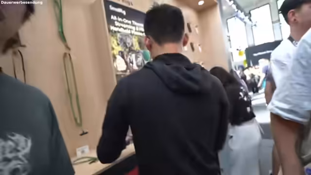 03:39:45Die Streamer interagieren intensiv mit den Ausstellern, um Gratis-Samples und Goodies zu erhalten. Sie machen sich über die komplizierten Regeln für Gewinnspiele lustig und nutzen strategische Gesprächsansätze, um ihr Interesse an den Produkten zu signalisieren. Sie notieren sich E-Mail-Adressen und versuchen, Visitenkarten auszutauschen, um potenzielle zukünftige Kooperationen aufzubauen.