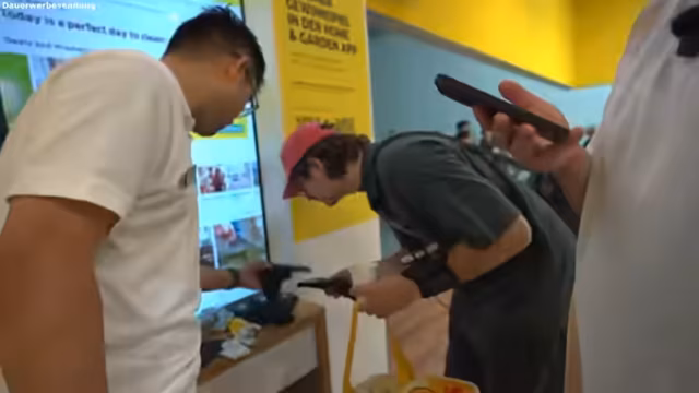 03:53:38Der Fokus verschiebt sich auf das direkte Networking. Die Streamer versuchen, gezielt mit Vertretern von großen Unternehmen wie Miele und DJI ins Gespräch zu kommen, um über mögliche Sponsorings oder Produktplatzierungen zu verhandeln. Sie erkennen, dass die IFA stark eine Business-to-Business-Plattform ist und sich die Zusammenarbeit oft über Agenturen abspielt, was die Kontaktaufnahme erschwert.