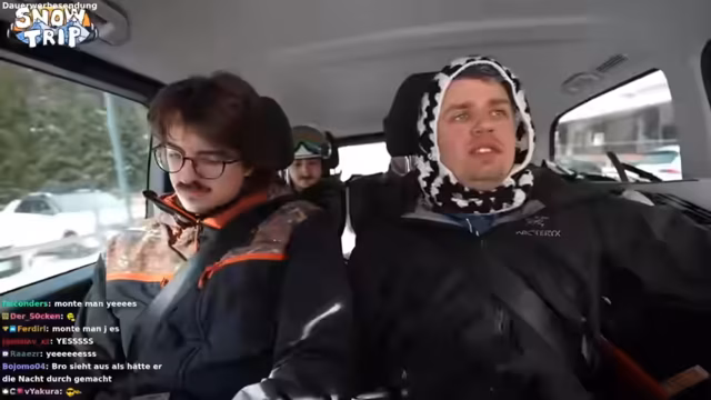 00:17:17Es gibt organisatorische Verwirrung bezüglich des Skipasses, da die Gruppe nur für einen Tag und nicht für die gesamte Woche bezahlt hat. Währenddessen wird das technische Setup für den Stream erläutert. Eine neue Kombination aus Mikrofonen und Kameras wird getestet, um sowohl die Snowboardgeräusche als auch die Gespräche des Teams aufzeichnen zu können. Die Gruppe beginnt ihre Fahrt zu einem neuen Skigebiet, das als Alternative zum vorigen Tag dienen soll, um den Andrang zu umgehen. Die Stimmung ist angespannt wegen der drohenden Verspätung.