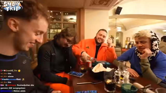 06:25:40Nach dem langen Tag auf der Piste beginnt die Suche nach einem Abendessen. Die Streamer stoßen auf Probleme, da viele Restaurants geschlossen sind oder nur Pizza anbieten. Es wird über die Qualität von Schnitzel und Pizza diskutiert. Auch die Vorlieben bezüglich Fleisch werden thematisiert, da eine Person über unangenehme Nachwirkungen klagt.