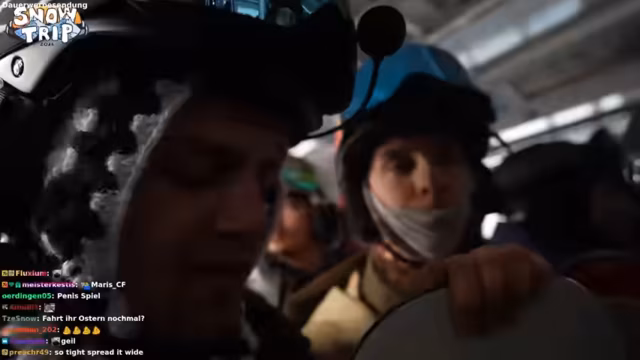 03:31:20Nachdem die anstrengende Fahrt durch unwegsames Gelände beendet ist, erreichen die Streamer wieder eine Skipiste. Die Rückkehr auf die 'Zivilisation' wird als Erleichterung empfunden, und die Gruppe plant, ihre Ausrüstung zu überprüfen. Die anfängliche Euphorie über das Abenteuer macht nun Platz für die körperliche Erschöpfung und die Kälte, die durch den Verlust von Sonnenwärneintreten.