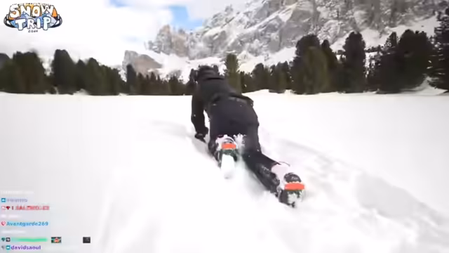 03:17:13Um eine möglichst saubere, unberührte Linie zu finden, beschließen die Streamer, einen Stück bergauf zu laufen, um dann eine perfekte Abfahrt in unberührten Schnee zu machen. Diese Pionierfahrt als Erste in eine Spur wird als das beste Gefühl beschrieben und als der Grund genannt, warum sie überhaupt Snowboarden, anstatt nur die Piste hinunterzufahren.