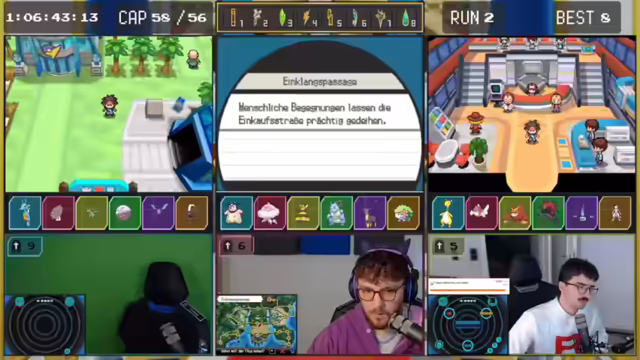 14:18:18Es wird Frustration darüber geäußert, dass nach jedem Kampf ein Pokémon verloren geht und dann zwei Stunden für das Setup benötigt werden, was als schlechter Stream und viel Leerlauf kritisiert wird. Es wird der Wunsch geäußert, nicht jedes Mal neu starten zu müssen und die Zeit effizienter zu nutzen. Die lange Setup-Zeit wird als Grund genannt, solche Streams in Zukunft nicht mehr zu machen. Es wird argumentiert, dass die Leute das Format mögen und dass man 80% der Stärke zurückgewinnt, wenn man schnell die richtigen Attacken und Setups macht. Das hundertste Mal wird jedes einzelne Poké-Center, Einkaufszentrum und irgendwelche Typen wegen Attacken, Pupostücken, Indigo-Stücken, Grünstücken und Herzschuppen abgeflogen. Es wird kritisiert, dass zu viele dumme Pokémon verloren wurden, was zu den langen Setup-Zeiten geführt hat. Es wird diskutiert, was in Zukunft passieren soll, wenn andere Games gezockt werden. Es wird nach einem Feuerstein gesucht. Es wird kritisiert, dass ein Link nicht gespielt wird. Es wird gefragt, warum ein Encounter nicht mitgenommen wird. Es wird argumentiert, dass es besser wäre, neu zu starten, anstatt so weiterzumachen. Es wird kritisiert, dass aus 5 Minuten Setup 30 Minuten gemacht werden und dann aus 30 Minuten 60 Minuten. Es wird die Frage aufgeworfen, ob der Stream zu Ende ist, wenn man geforward wird. Es wird argumentiert, dass man jetzt nicht nur eine Stunde mehr Zeit hat, um zu setupen. Es wird gesagt, dass das Format nichts für einen ist, wenn man viel setupen muss. Es wird argumentiert, dass man viel setupen muss. Es wird kritisiert, dass man eine halbe Stunde durch die Hülle fährt. Es wird gesagt, dass nach jedem Verlust für 5 Minuten gesetupt wird. Es wird argumentiert, dass es im Late-Game normal ist, dass man sich länger setupen muss, weil man so viele Pokémon verloren hat. Es wird argumentiert, dass man mit einem besseren Setup ein besseres Ergebnis erzielen könnte. Es wird kritisiert, dass Vokano nicht gespielt werden soll. Es wird argumentiert, dass es dumm ist, ein Dragoran nicht zu fangen, weil es einen am Ende retten könnte. Es wird gesagt, dass man jetzt auch eine halbe Stunde noch was im Team ändern könnte. Es wird kritisiert, dass sieben Kämpfe in sieben Stunden zu langsam sind. Es wird argumentiert, dass man sich in der Mitte treffen muss mit einem Kompromiss. Es wird kritisiert, dass man 30 Stunden Spielzeit hat und 10 Stunden im Poké-Center hängt. Es wird argumentiert, dass man am Anfang nicht viel Zeit braucht, aber im Late-Game mehr Zeit benötigt. Es wird gesagt, dass man sich nicht richtig freuen kann, wenn man die Top 4 schafft, weil man 12 Stunden im Poké-Center hängt. Es wird argumentiert, dass man während der ganzen Diskussion schon mal zum Kyurem hätte gehen können. Es wird kritisiert, dass Chefstrubel immer mehr Freiraum bekommt und die Länge gezogen wird. Es wird gefragt, ob die Streamer überhaupt befreundet sind. Es wird überlegt, ob man Überreste auf Turtok oder auf Baustellen-Dude spielen soll.